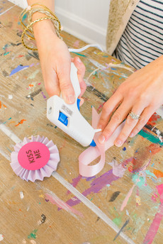 Write/print a fun message onto your circle and hot glue it to the center of the rosette.