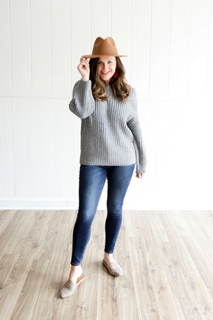 Make warm and cozy fun and flirty with an off-the-shoulder sweater. A simple off-the-shoulder look can take all the frump out of any chunky knit. Pump up this casual look by adding booties and a suede fedora.